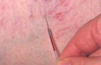 and causes it to shrink more quickly than liquid sclerotherapy.