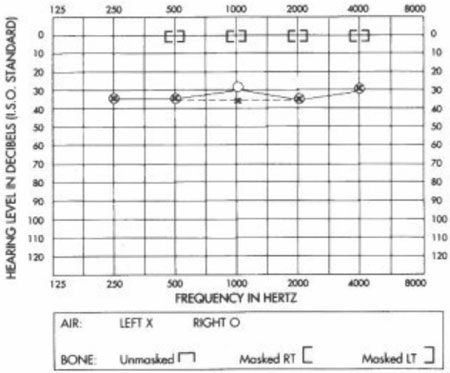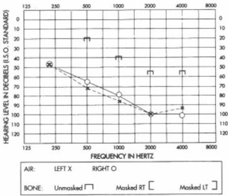 and the left ear is an ‘X’ on the audiogram.