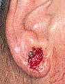 the body: face, ears, neck, scalp, shoulders, hands and feet.